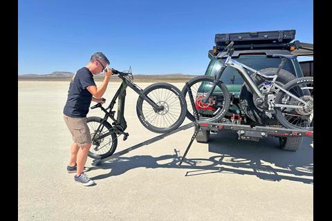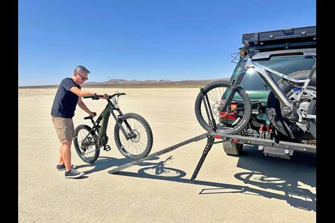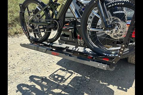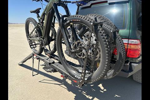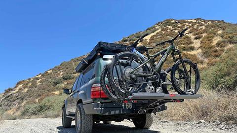 Transporting these high-performance EMTBs required a bike rack that could withstand the rigors of off-road driving and additional heft of e-bikes, and the 1Up USA 2” Super Duty hitch-mounted bike rack proved to be up to the task.