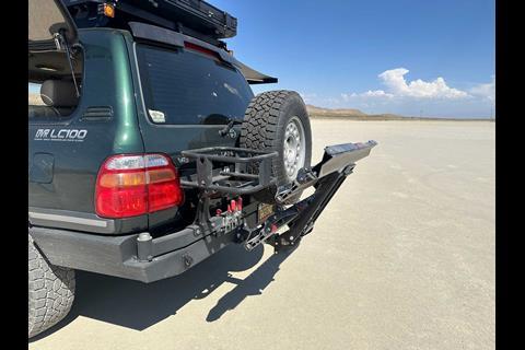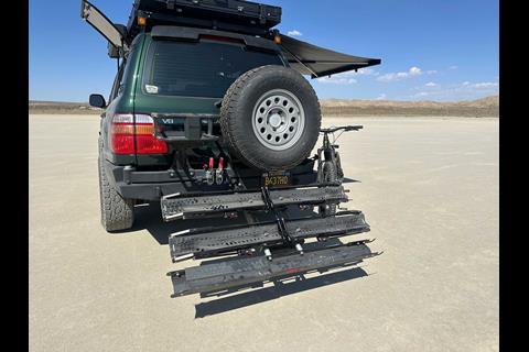One of the standout features of this rack is its versatility. It can be tilted down to allow access to rear hatches and tailgates, although in our case, the Land Cruiser’s rear bumper’s swingouts required a bit more clearance.